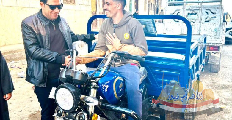 عبدالهادي يزور «نادر» بمنزله ويهديه «تروسيكل» تحقيقاً لأمنيته
